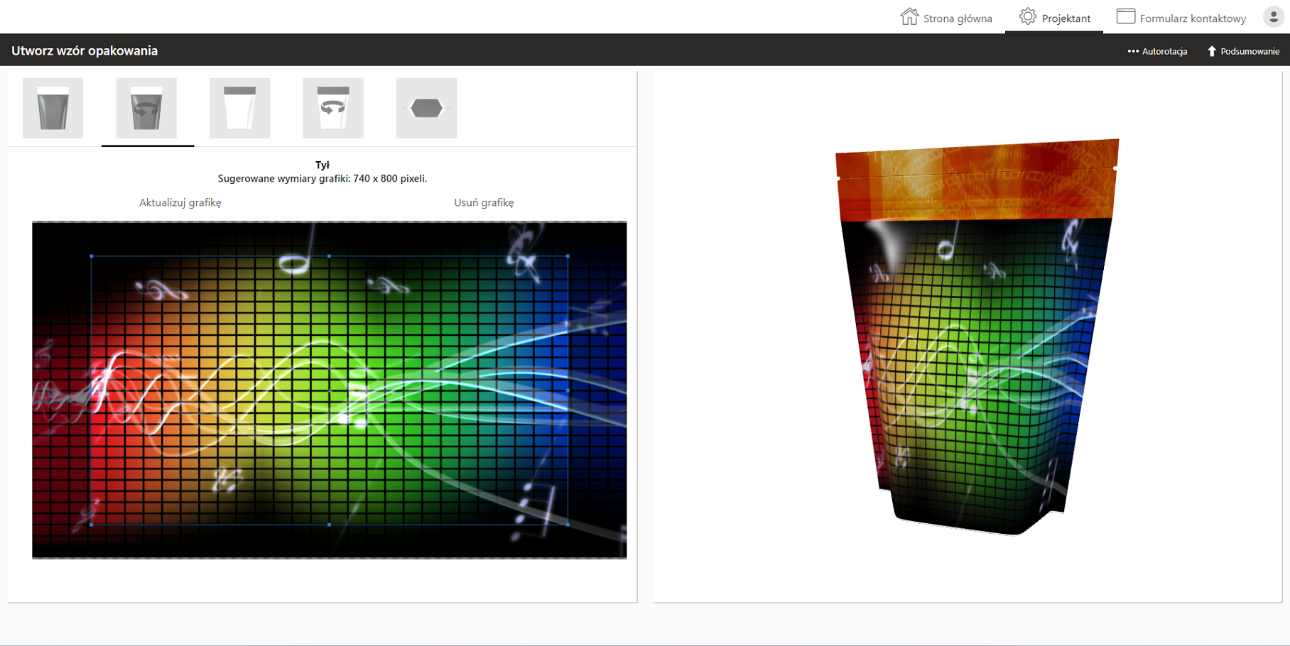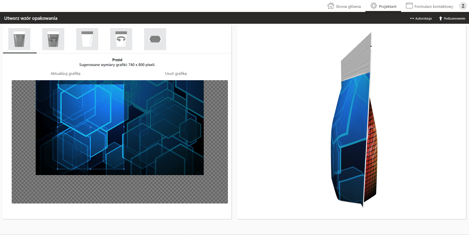 Podgląd w czasie rzeczywistym utworzonych wzorów produktów