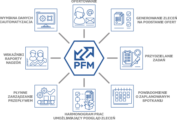 • Ofertowanie wraz z pózniejszym przekształceniem propozycji w zlecenie – dzięki tej opcji znacznie usprawnisz nadzór nad wszystkimi przesłanymi ofertami oraz błyskawicznie zmienisz je w zlecenia w momencie akceptacji.